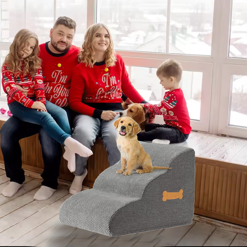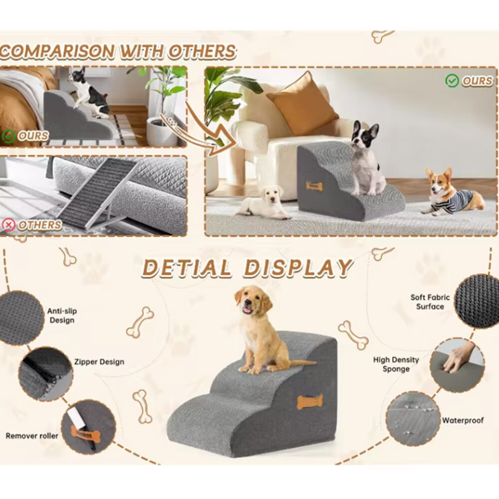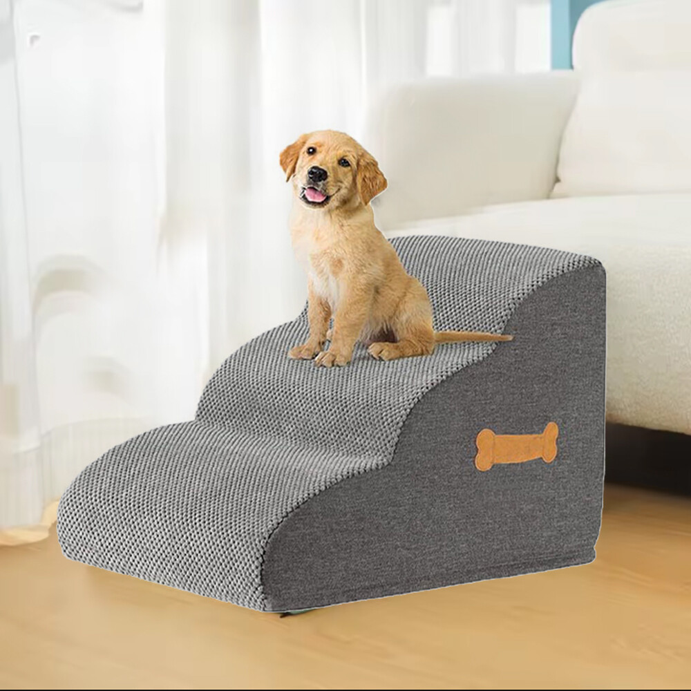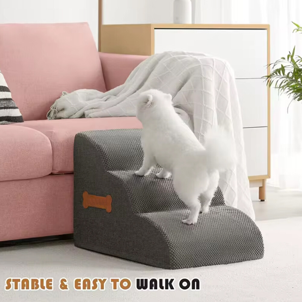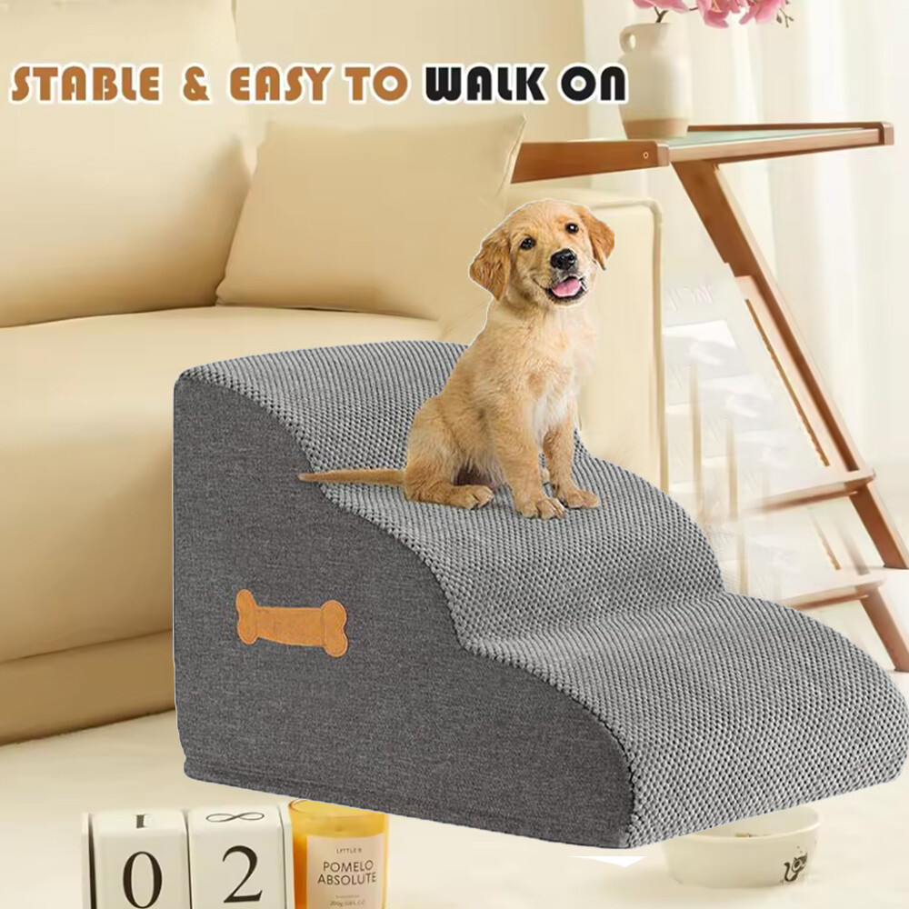3Step Dog Stairs Pet For Bed Sofa Cats Ladder Ramp With Removable Cover Portable